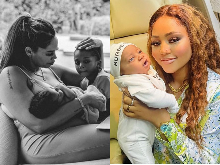The beautiful woman made this known on her Instagram handle where she posted a sweet photo of herself holding her newborn child while she captioned it saying, “Beyond a blessing”.