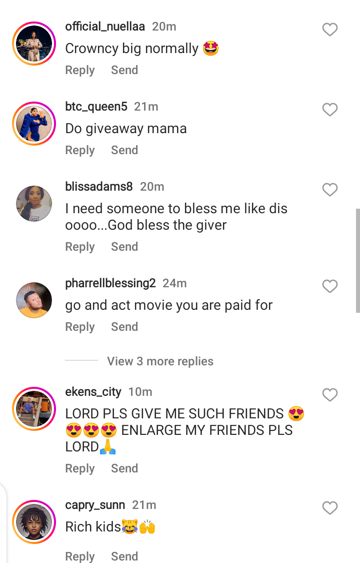 Destiny Etiko couldn’t contain her excitement as she received 500k from fast-rising actress and filmmaker, Crowncy Anyanwu. She was grateful for her kind gesture and thanked her for putting a smile on her face.