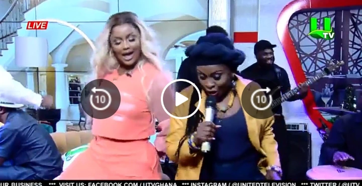 Nana Ama Mcbrown then joins Akosua Agyapong as they dance together.