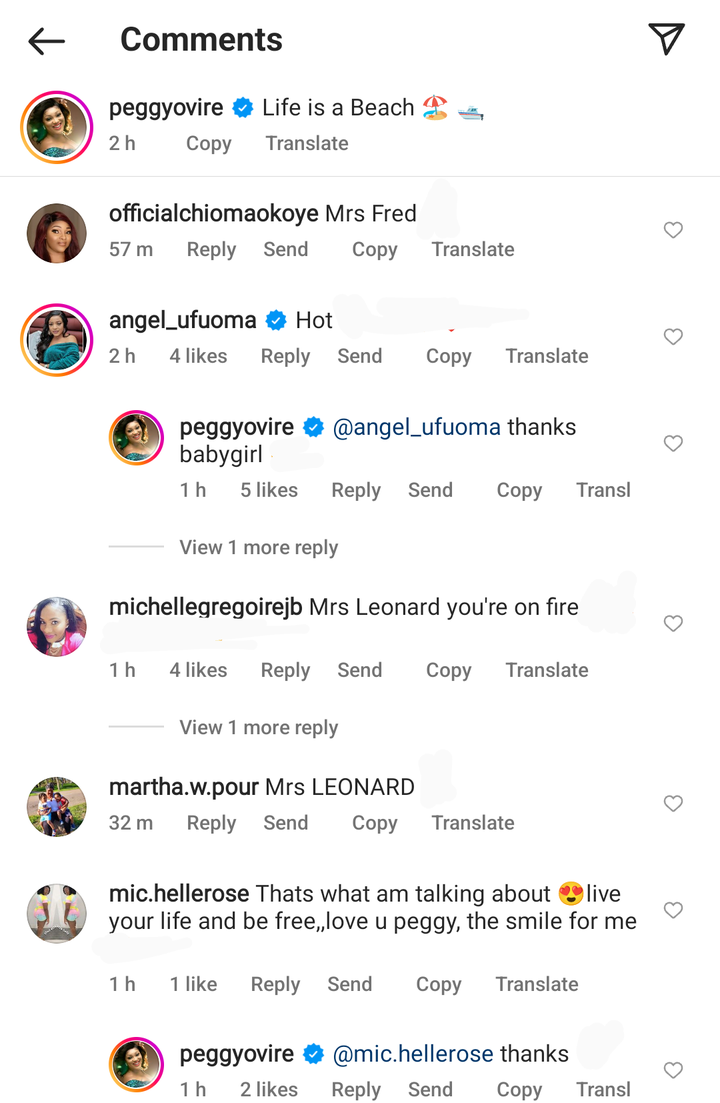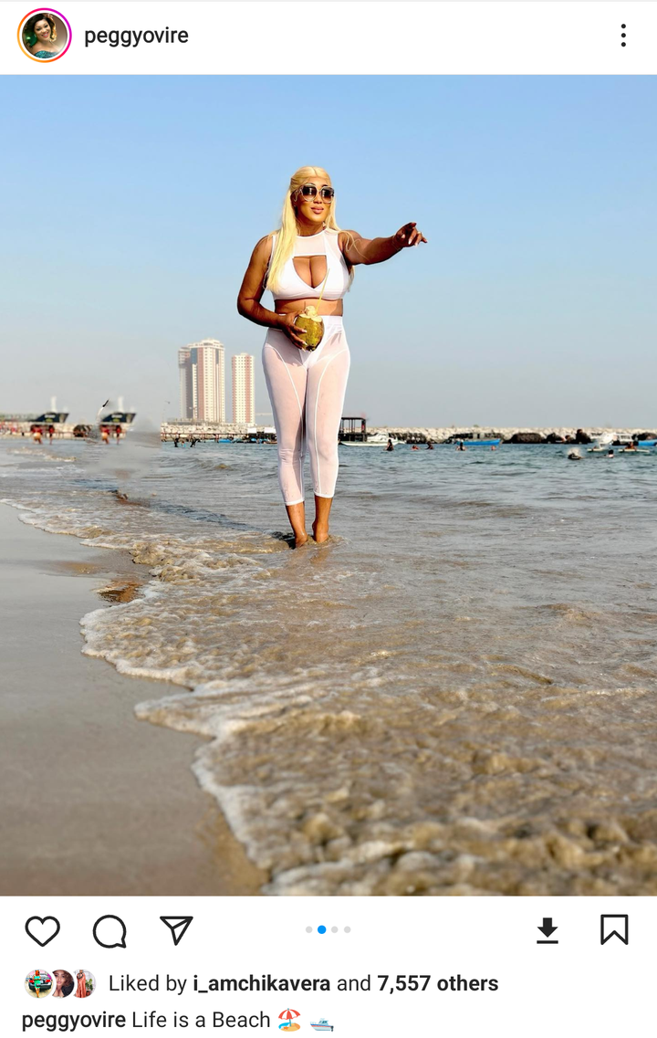 Peggy Ovire, who happens to be the wife of popular actor, Frederick Leonard, has used her new post to show off her beauty to her fans as she went out to catch some fun at the beach.